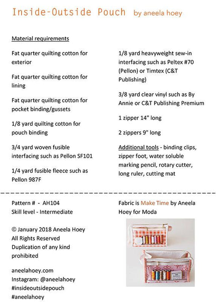 Aneela Hoey - Inside Outside Pouch - Paper Pattern