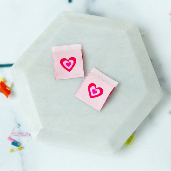 Designed with a centerfold, each label is double-sided and features identical hearts on each side. Sew them into seams, tuck under bindings, or add them to an edge or hem.