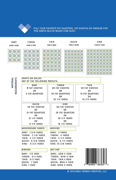 Compass Star is a block based star quilt for the modern quilter. Includes 5 size options: Baby, Throw, Twin, Queen and King.
