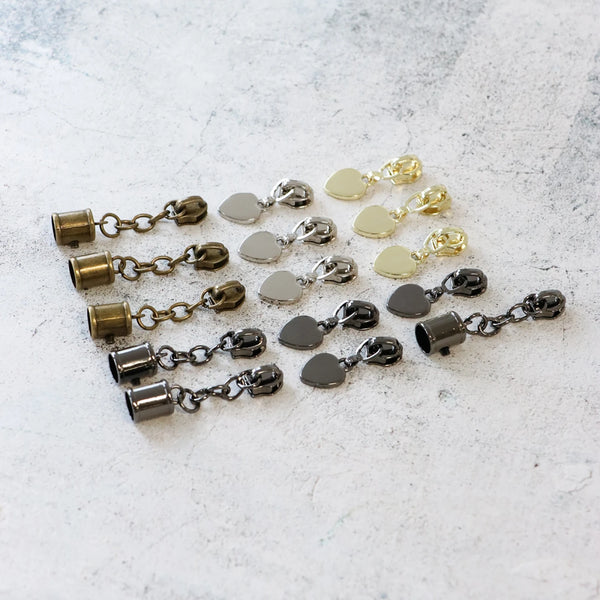 Can't decide on which zippers and pulls to choose? Shop our community top-picks and dreamy zipper bundles to complete your collection! 1 Yard is included of each of the five zipper tapes. These are #5 Zippers. There are 15 total zipper pulls included.